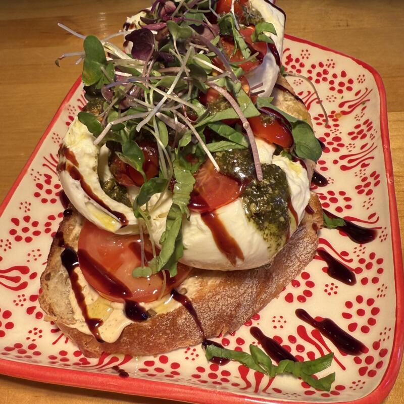 Herbed Goat Cheese | Pesto | Burrata Cheese | Basil | EVOO | Balsamic Glaze | Italian Parmesan Bread